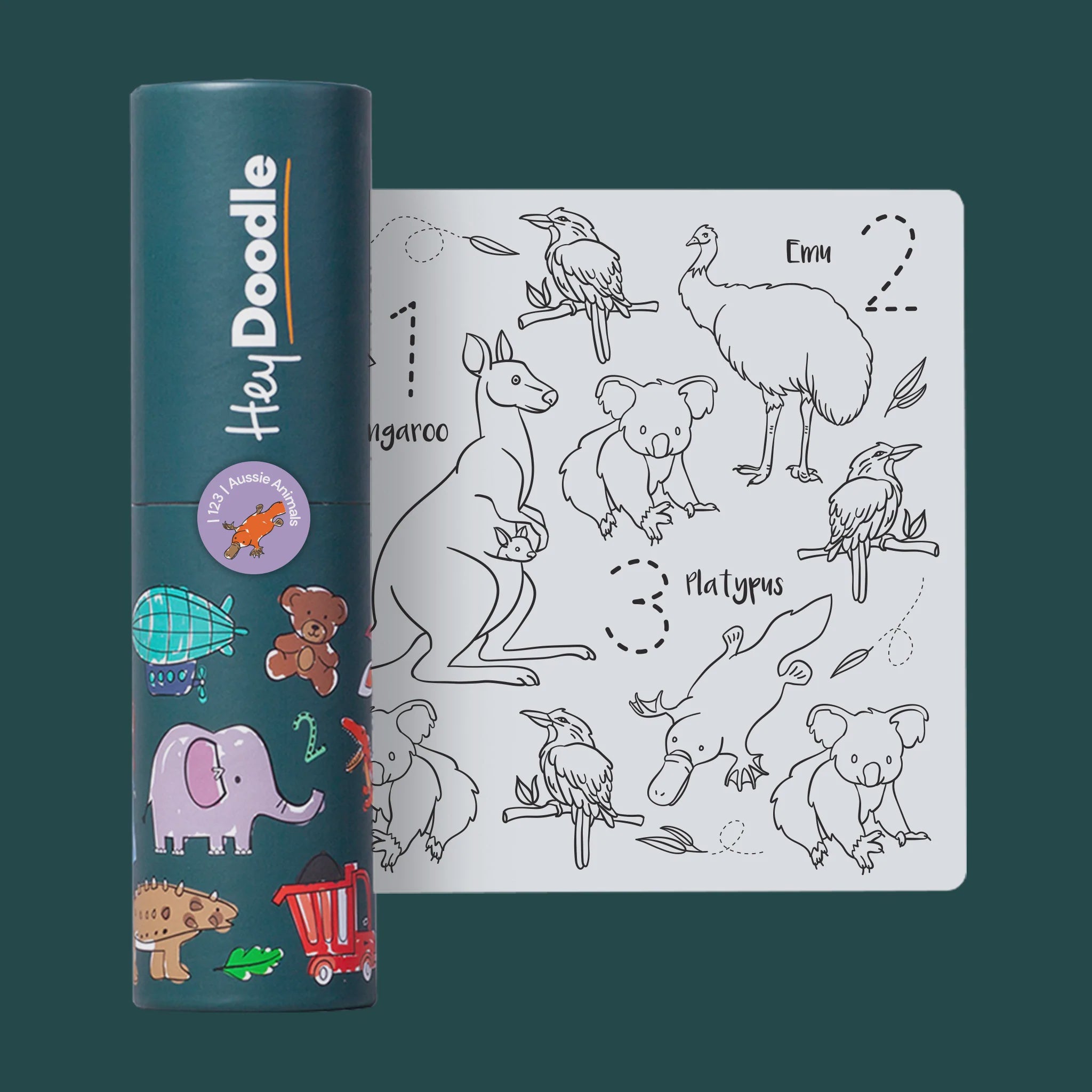 *Pack includes 1 HeyDoodle MiniMat, 3 HeyDoodle Markers and a travel tube.