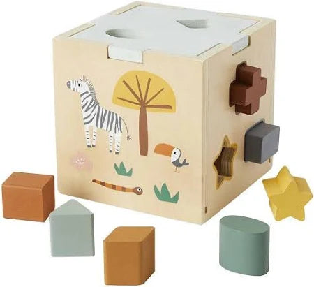 Delight your child’s senses and imagination as they play with the Zookabee Wood Shape Sorter Toy for 12m+.