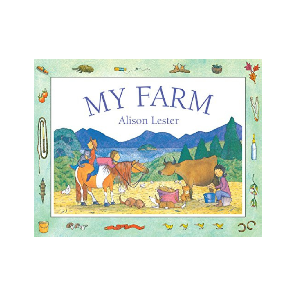 ALISON LESTER: AUSTRALIA’S CHILDREN’S LAUREATE 2012-13 Alison Lester grew up on a farm by the sea in eastern Victoria. My Farm is her story of a memorable year, the year she got a palomino pony for Christmas. Trick-riding horses, mustering cattle, training the dog, competing at the local show, feeding calves, picking mushrooms, raising a baby wombat, building cubbies, cutting hay, swimming ponies in the dam, hypnotizing chooks . . . all the activities through the seasons are depicted with child-like mischief and humour. This is a perfect companion to Alison Lester’s best-selling Imagine and Magic Beach.