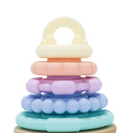 So beloved is our Rainbow Stacker we decided to combine it with natural beech wood and create the Wobble Stacker! The base is uniquely designed to wobble back and and forth when knocked by bub or you. Like our Rainbow Stacker each piece comes apart and can stack in any order encouraging hand-eye coordination while being the perfect teether.
