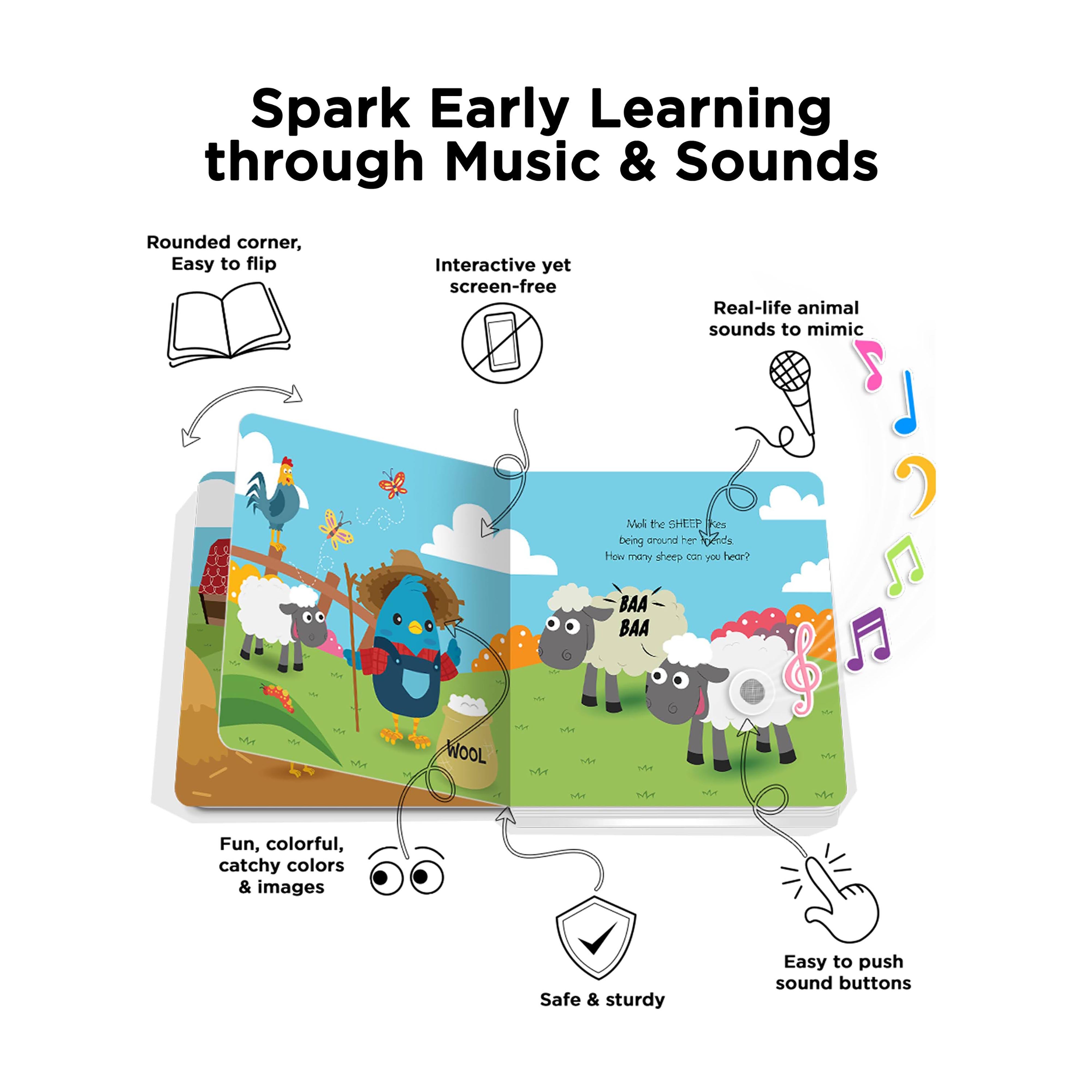 • Real-life animal sounds: cow, pig, sheep, horse, and duck