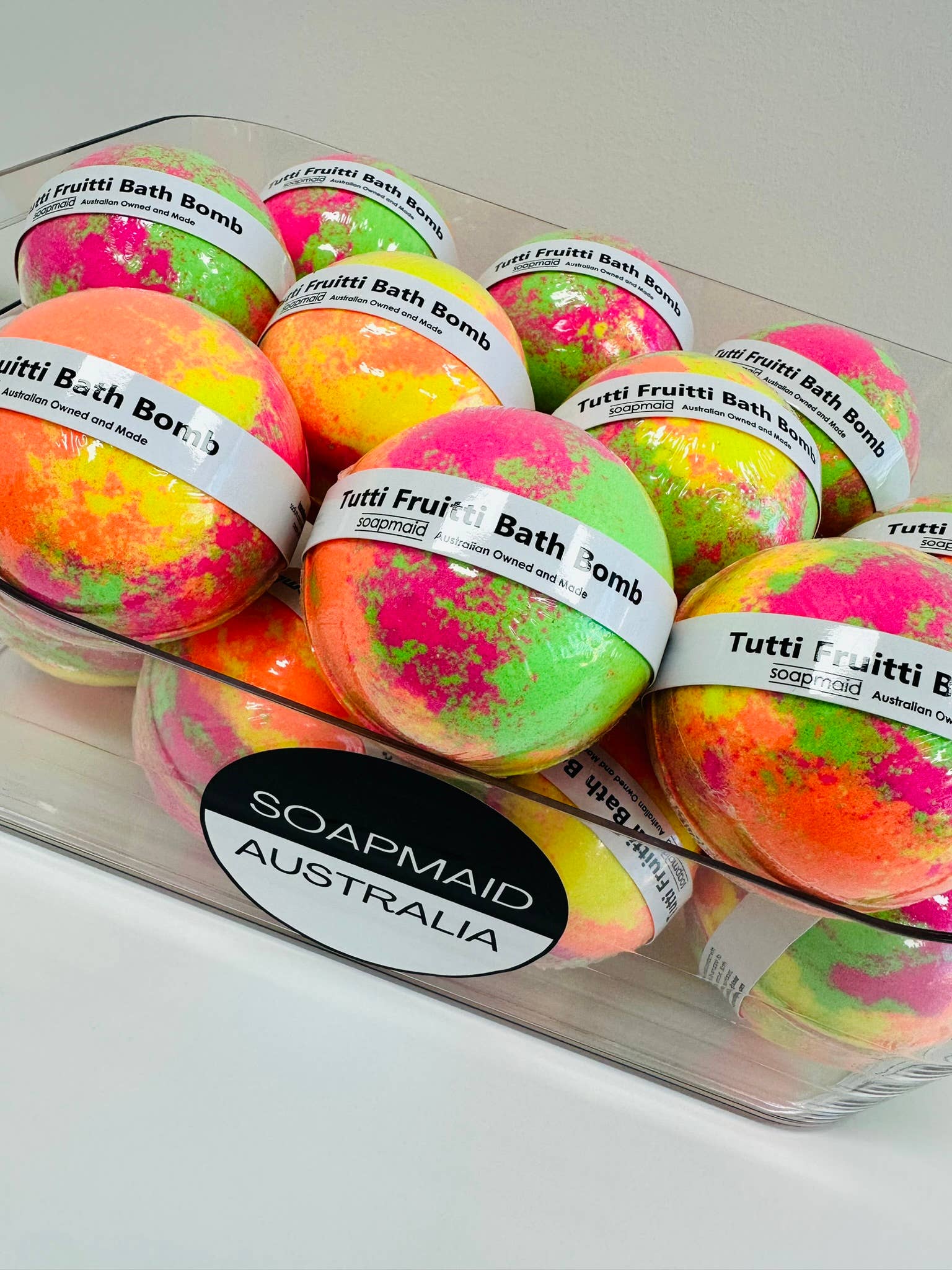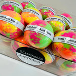 Our bath bombs are SLS/SLSA free ! Shrink wrapped for protection Ingredients: sodium bicarbonate, citric acid, olive oil, sodium coco sulphate (derived from coconut oil), polysorbate 80, kaolin clay, cream of tartar, mica, fragrance (may contain glitter, candy or botanicals) Net Weight: 300g BARCODE: This item is barcoded.