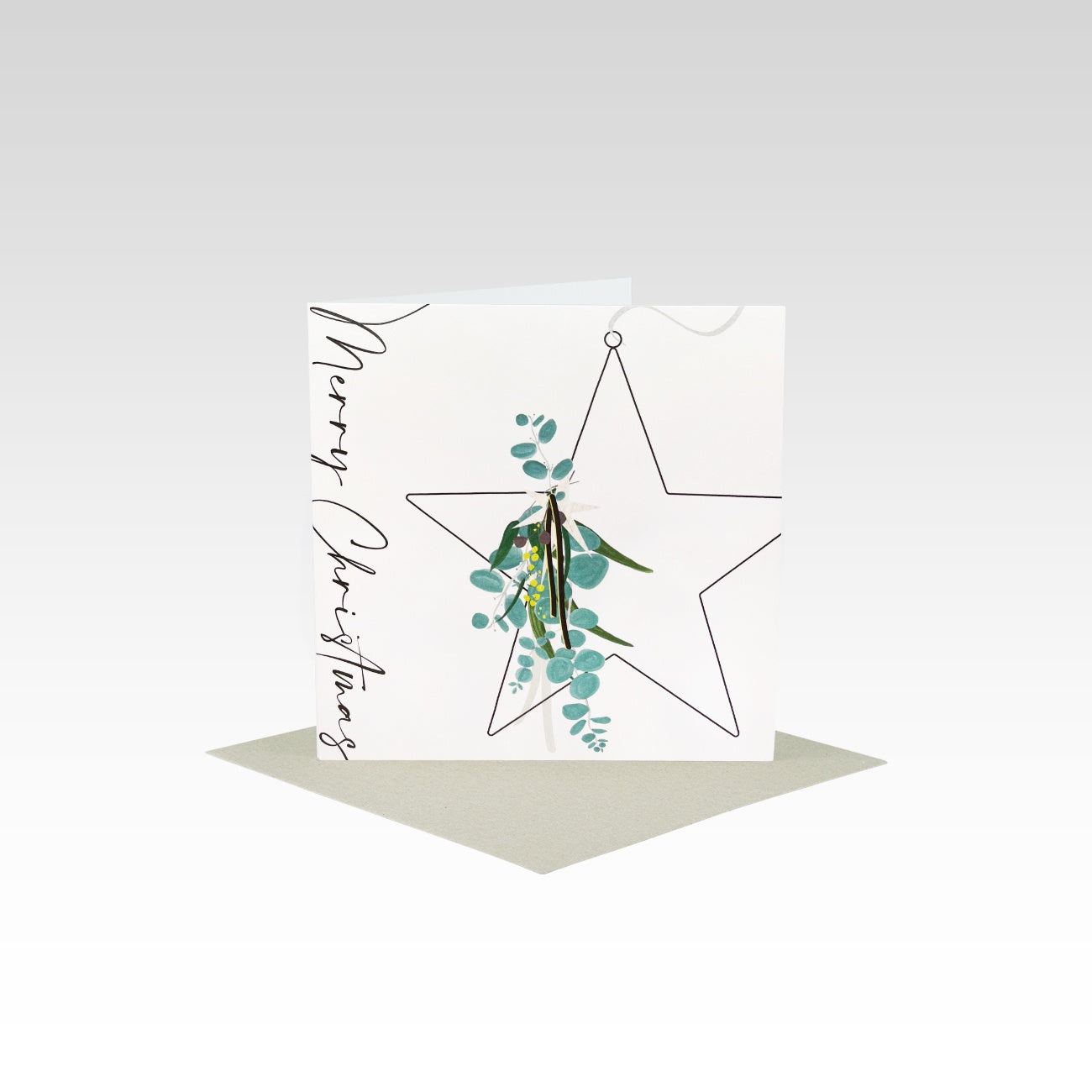 Mini Christmas card with star and foliage design on crisp white cardstock.