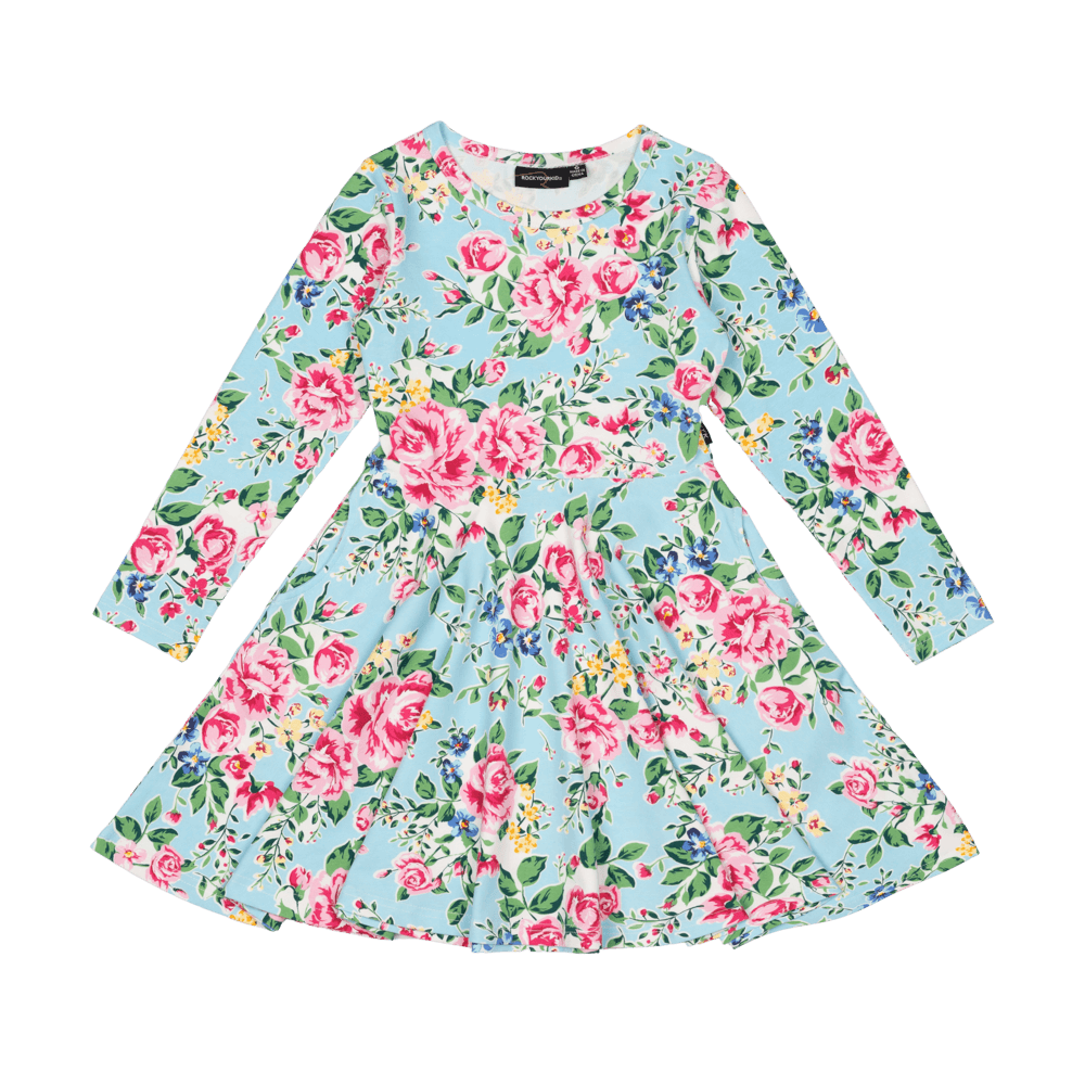 Rock Your Baby Blue Garden Waisted Dress - Blue Floral